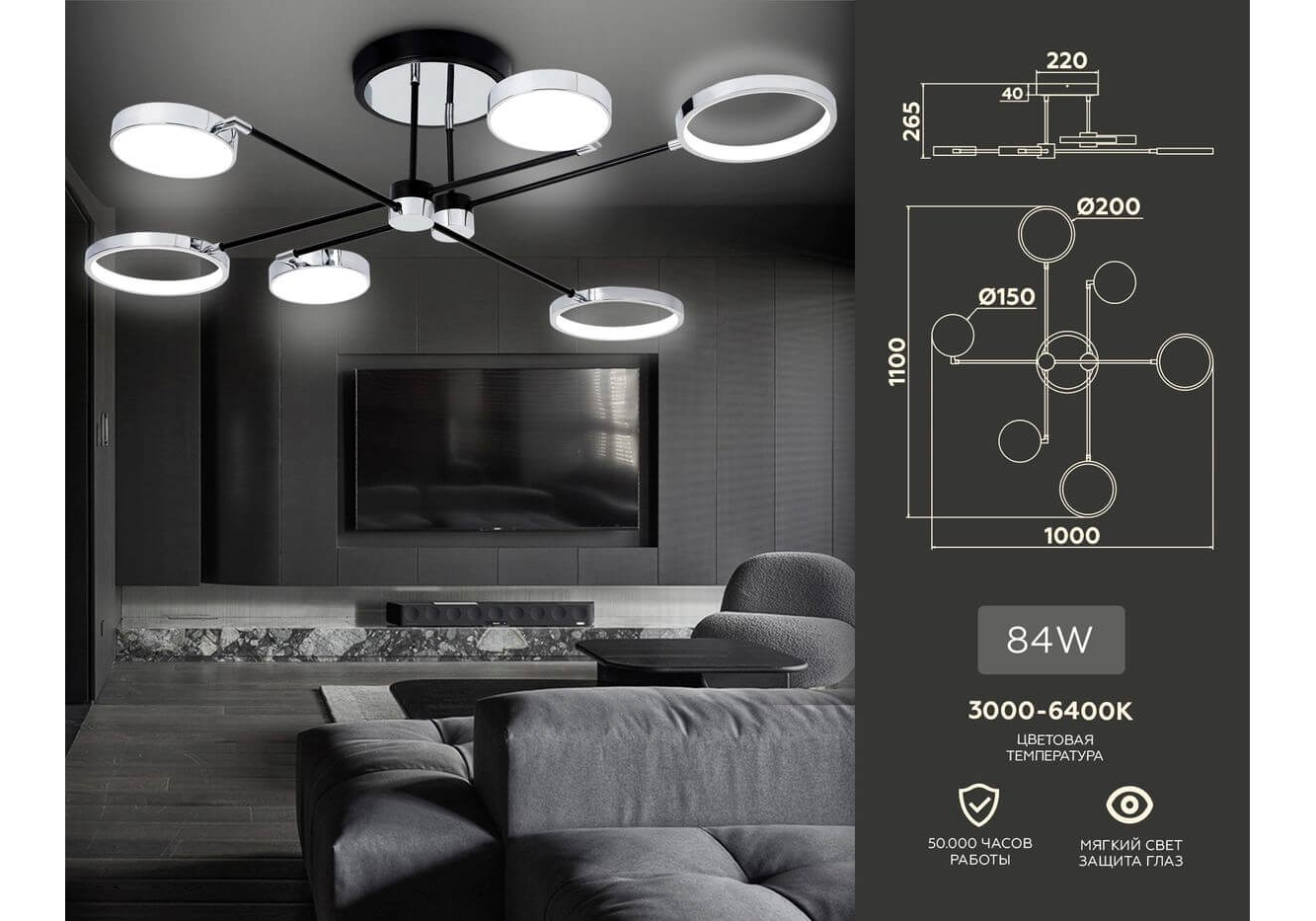 Подходит для низких потолков: