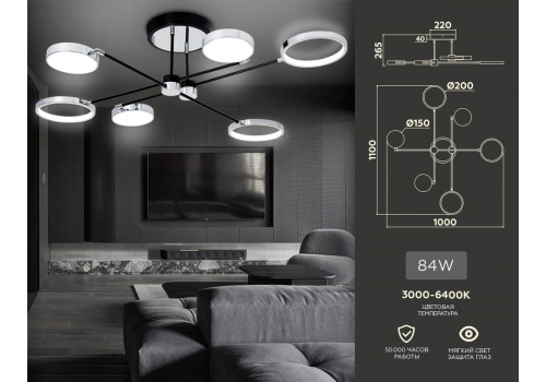 Потолочная люстра FL5155 Comfort Line от российской компании Ambrella light является превосходной моделью для гостиной в стиле Хай-тек. Прочный каркас, продуманная конструкция и высококачественное покрытие придают данной модели необыкновенный внешний вид. Люстра осветит помещение площадью до 32 м2. Источник света уже встроен в корпус и не требует приобретения дополнительных лампочек. Модель FL5155Comfort Line монтируется на потолок с использованием стандартной монтажной планки. Родиной бренда Ambrella light является РОССИЯ. Заявленный производителем Ambrella light гарантийный срок составляет 2 года. Потолочная светодиодная люстра Ambrella light Comfort Line FL5155 будет отличным выбором для покупки в интернет-магазине ГиперСвет. Мы оперативно доставим Ваш заказ по Калуге, Москве или в любой другой регион России.