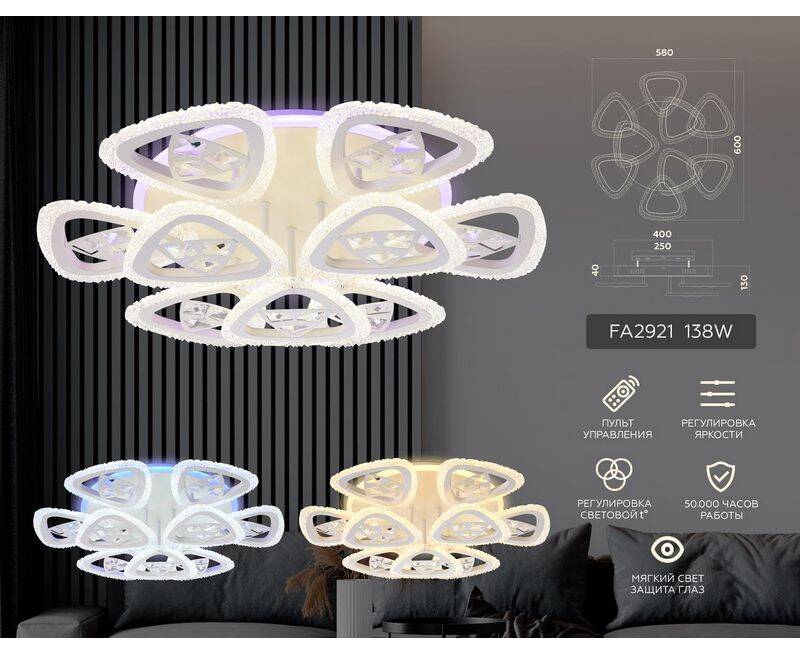Потолочная люстра FA2921 Original от российской компании Ambrella light станет изящным центром интерьера гостиной в стиле Хай-тек. Прочный каркас, продуманная конструкция и высококачественное покрытие придают данной модели потрясающий внешний вид. Люстра осветит помещение площадью до 20 м2. Источник света уже встроен в корпус и не требует приобретения дополнительных лампочек. Модель FA2921Original монтируется на потолок с использованием стандартной монтажной планки. Родиной бренда Ambrella light является РОССИЯ. Сборочное производство компании расположено в Китае, однако, это никак не сказывается на качестве продукции. Заявленный производителем Ambrella light гарантийный срок составляет 2 года. Потолочная светодиодная люстра Ambrella light Original FA2921 будет отличным выбором для покупки в интернет-магазине ГиперСвет. Мы оперативно доставим Ваш заказ по Калуге, Москве или в любой другой регион России.