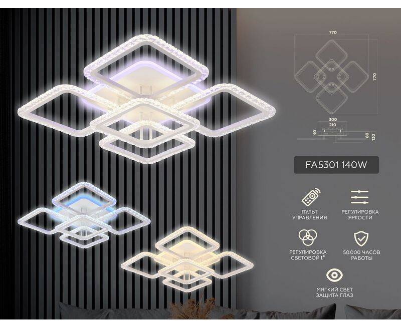 Потолочная люстра FA5301 Original от российской компании Ambrella light прекрасно подойдет для спальни в стиле Хай-тек. Прочный каркас, продуманная конструкция и высококачественное покрытие придают данной модели дизайнерский внешний вид. Люстра осветит помещение площадью до 20 м2. Источник света уже встроен в корпус и не требует приобретения дополнительных лампочек. Модель FA5301Original монтируется на потолок с использованием стандартной монтажной планки. Родиной бренда Ambrella light является РОССИЯ. Сборочное производство компании расположено в Китае, однако, это никак не сказывается на качестве продукции. Заявленный производителем Ambrella light гарантийный срок составляет 2 года. Потолочная светодиодная люстра Ambrella light Original FA5301 будет отличным выбором для покупки в интернет-магазине ГиперСвет. Мы оперативно доставим Ваш заказ по Калуге, Москве или в любой другой регион России.