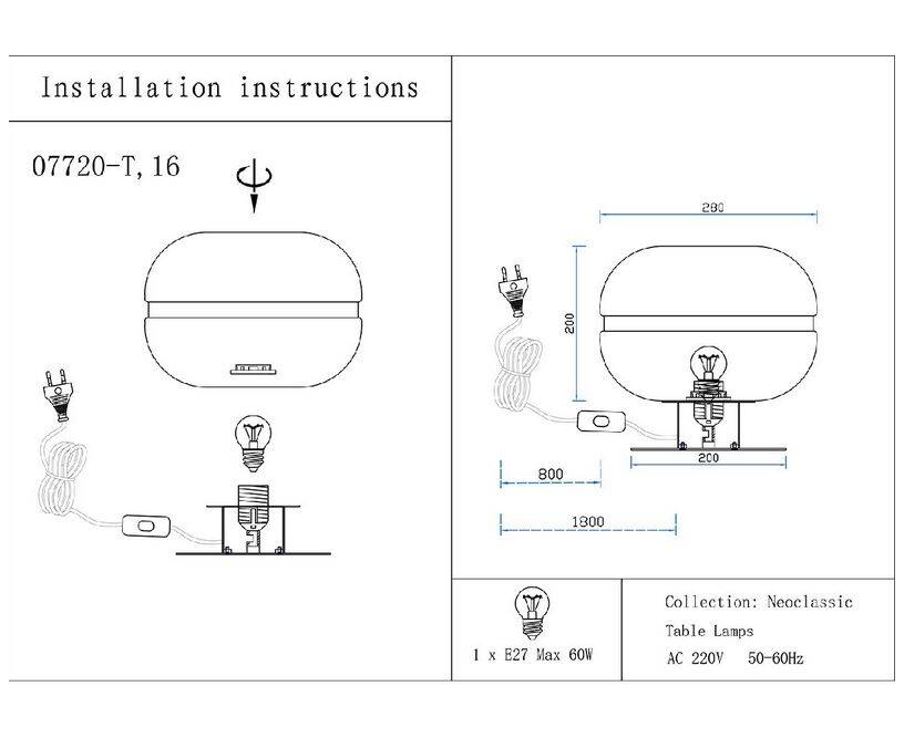 Мощность ламп, Вт: