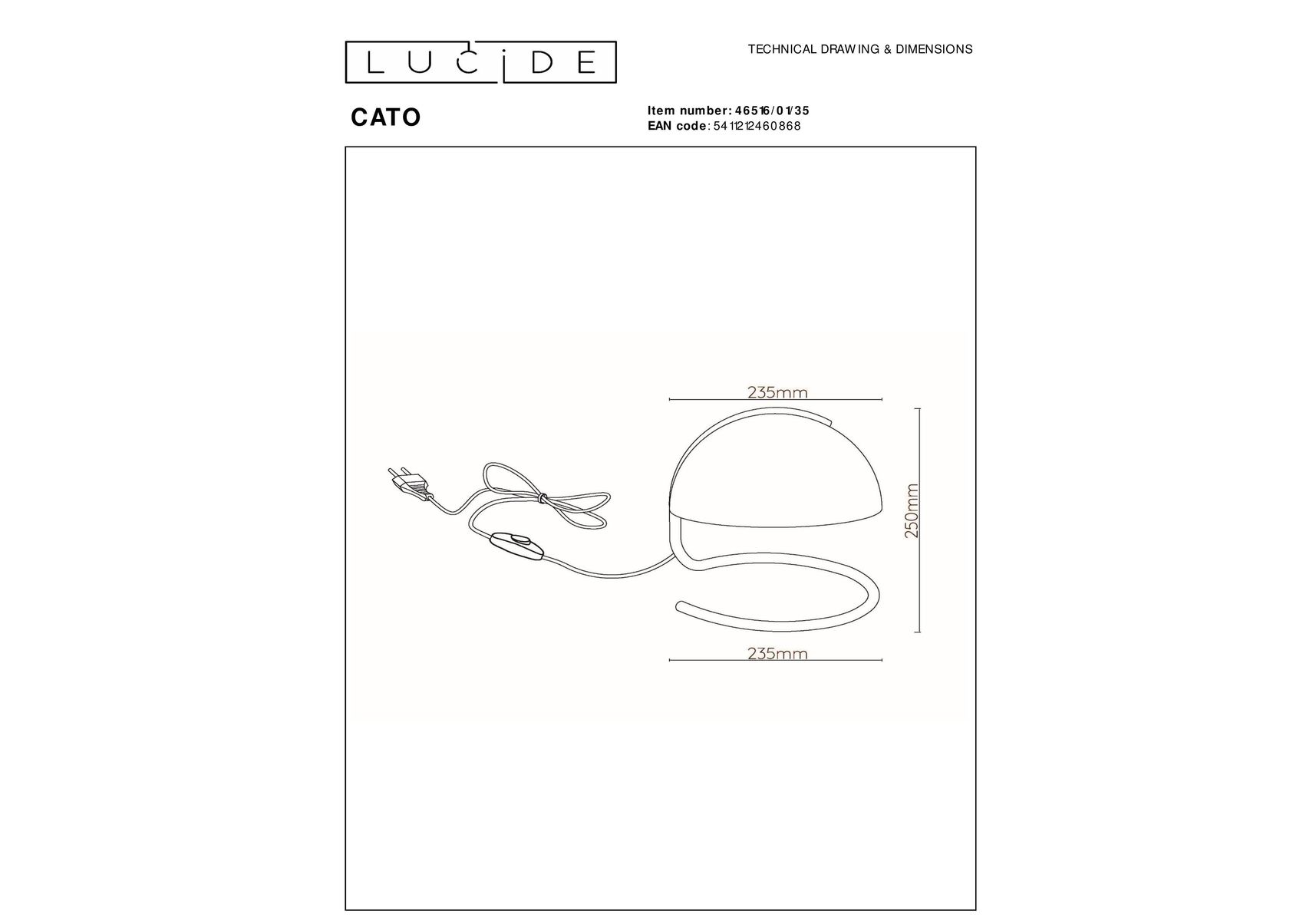 Настольная лампа Lucide Cato 46516/01/35
