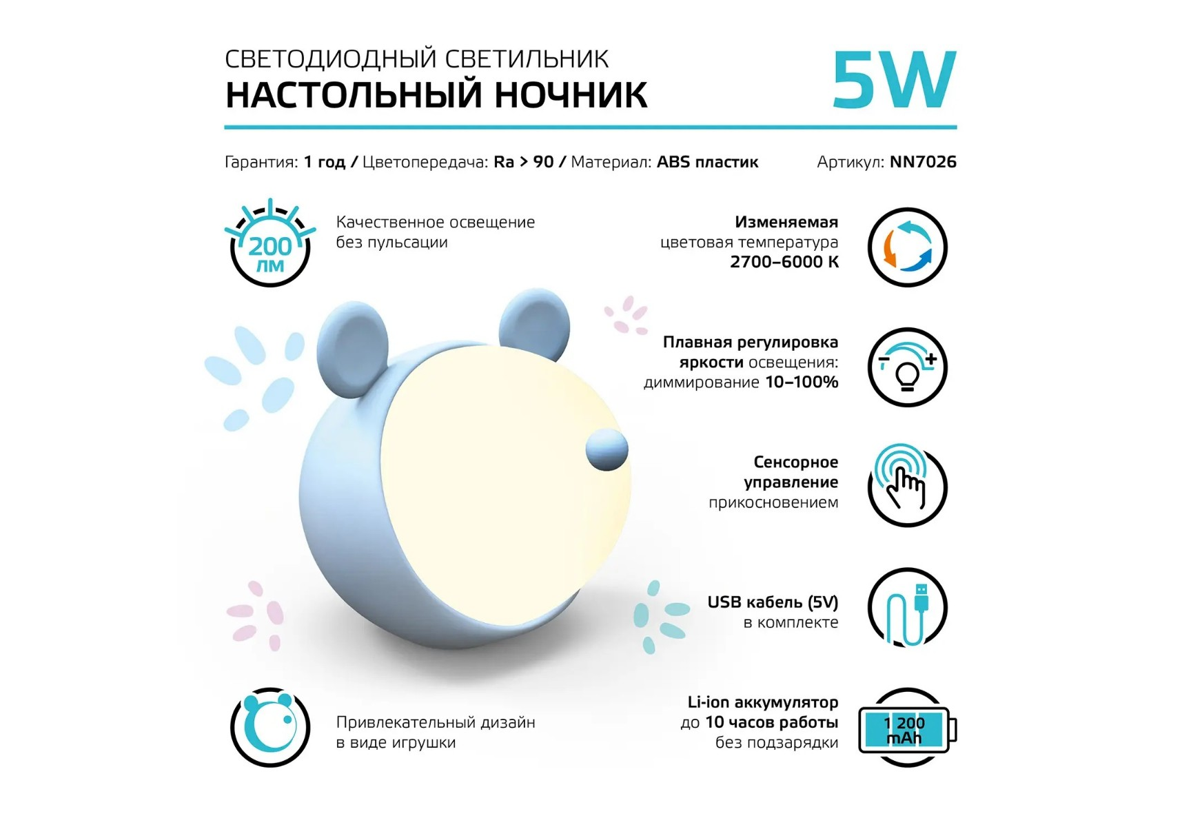 Настольный светодиодный детский ночник Gauss NN7026