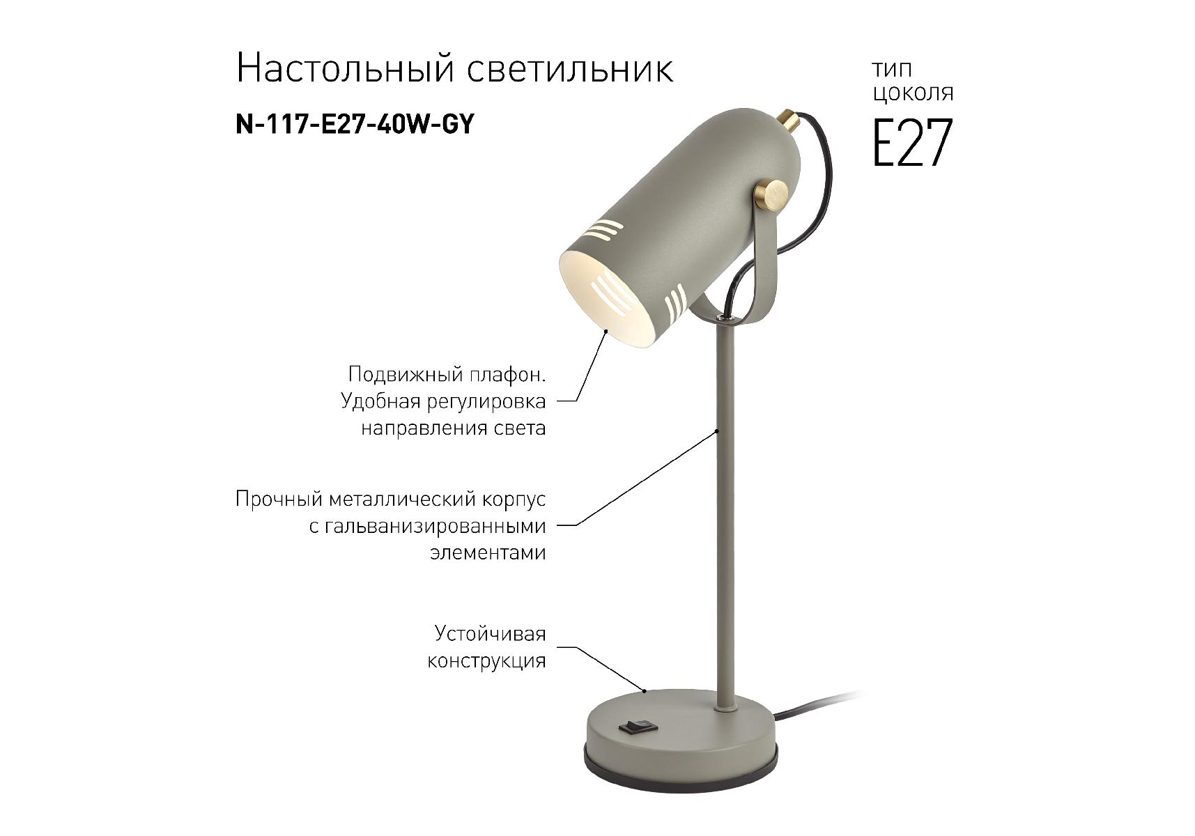 Настольная лампа ЭРА N-117-Е27-40W-GY Б0047195