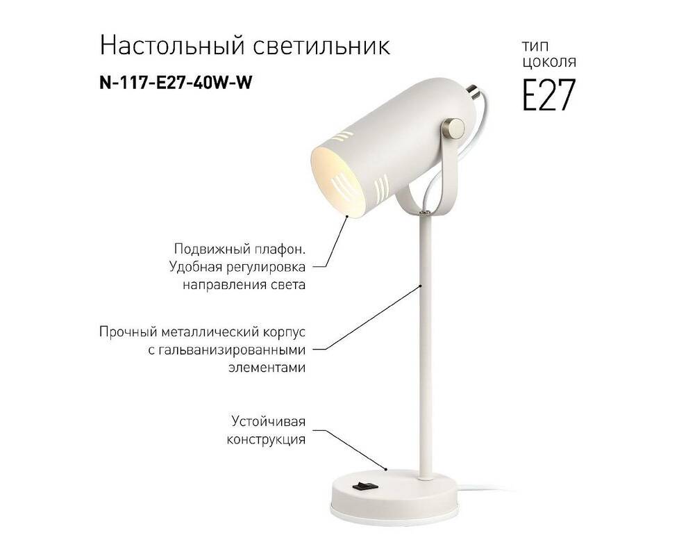 Настольная лампа ЭРА N-117-Е27-40W-W Б0047192