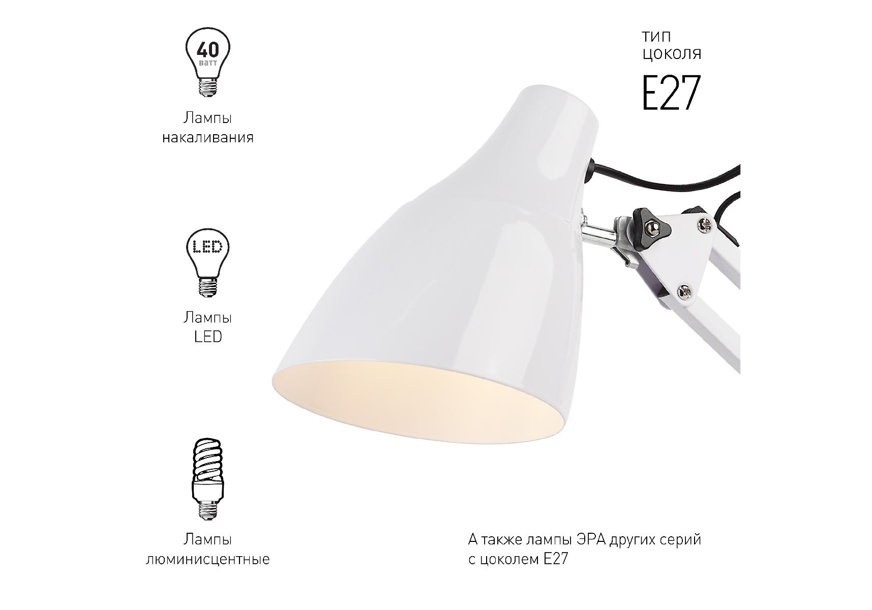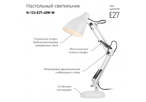 Настольная лампа ЭРА N-123-Е27-40W-W Б0047196