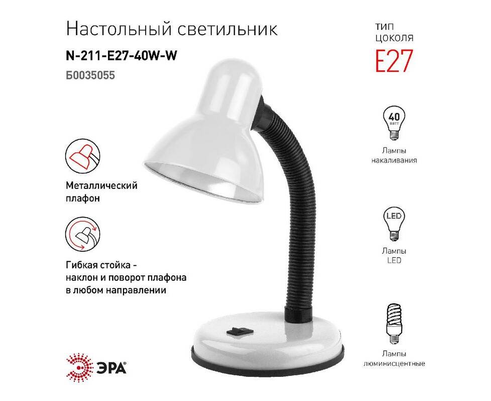 Настольная лампа Эра N-211-E27-40W-W Б0035055
