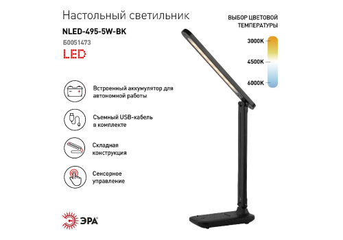 Настольная лампа Эра NLED-495-5W-BK Б0051473