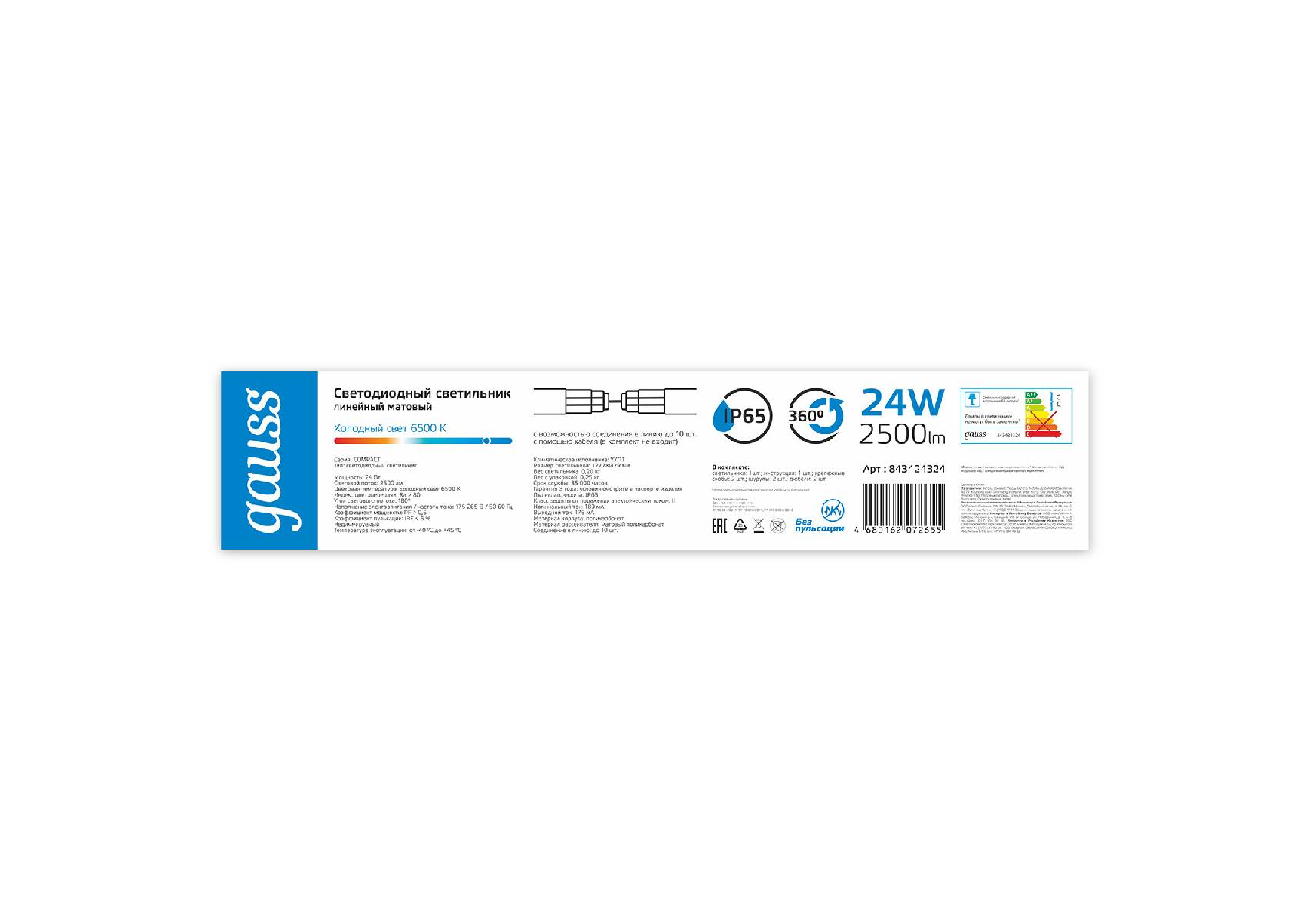 Линейный потолочный светильник Gauss Compact 843424324