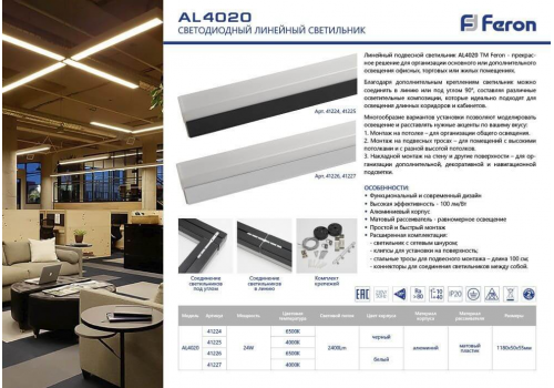 Подвесной линейный светодиодный светильник Feron AL4020 41227