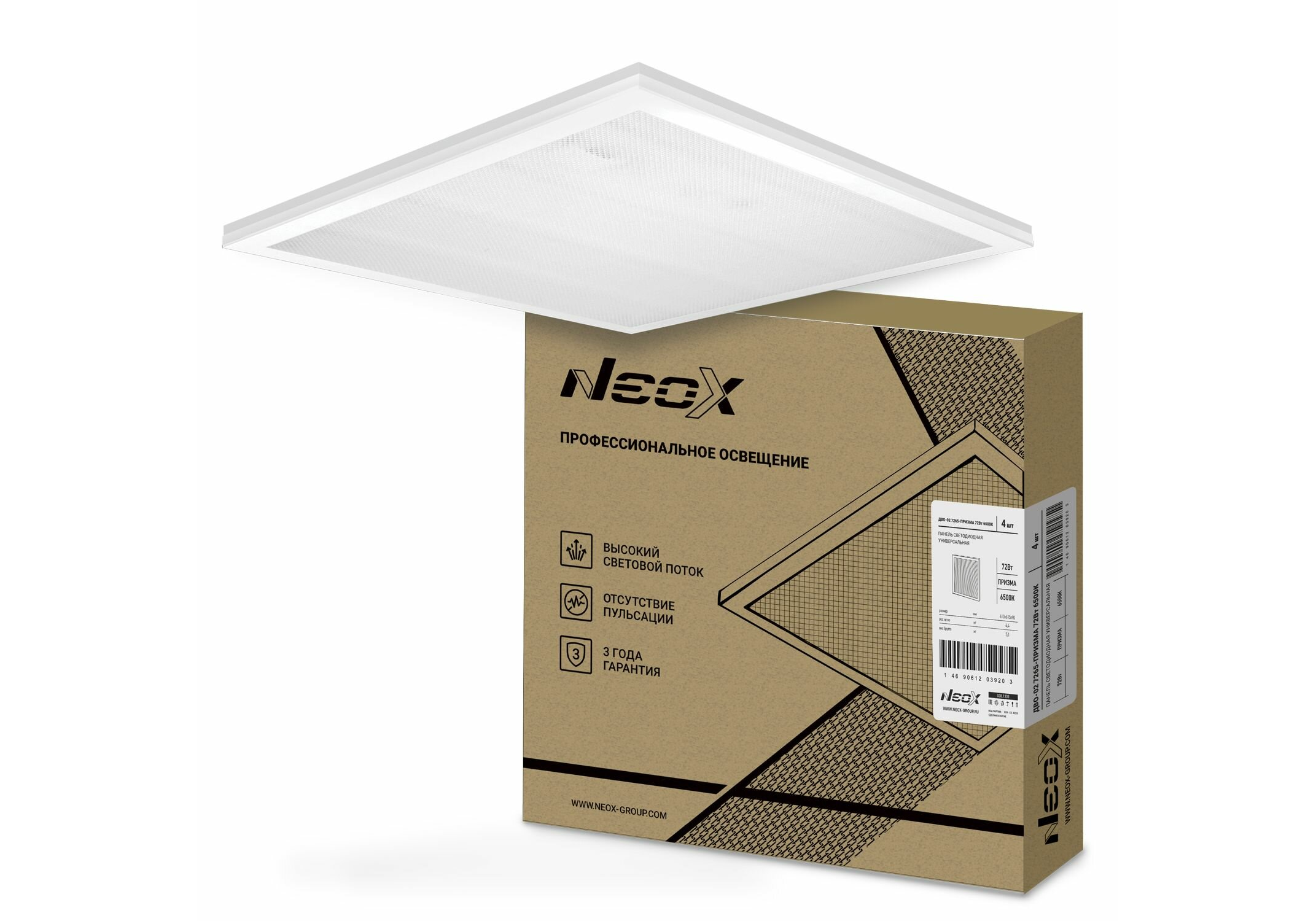 Светильник светодиодный ДВО-02 3665-ПРИЗМА 36Вт 6500К 3800лм 230В 110лм/Вт 595х595х19 универс. панель NEOX 4690612038179