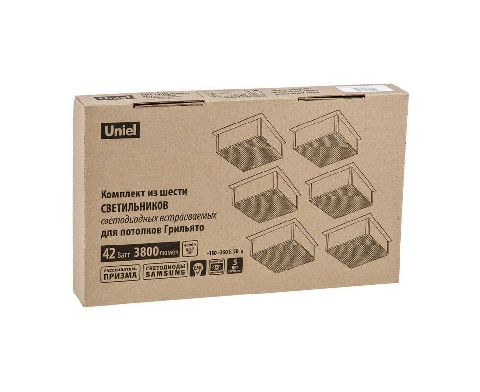 Встраиваемый светодиодный светильник Uniel ULP-0808 42W/4000К IP40 Grilyato White KIT06 (6 шт.) UL-00011060