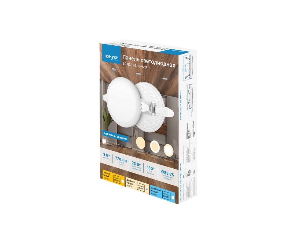Встраиваемая светодиодная панель безрамочная Apeyron FLP 06-101