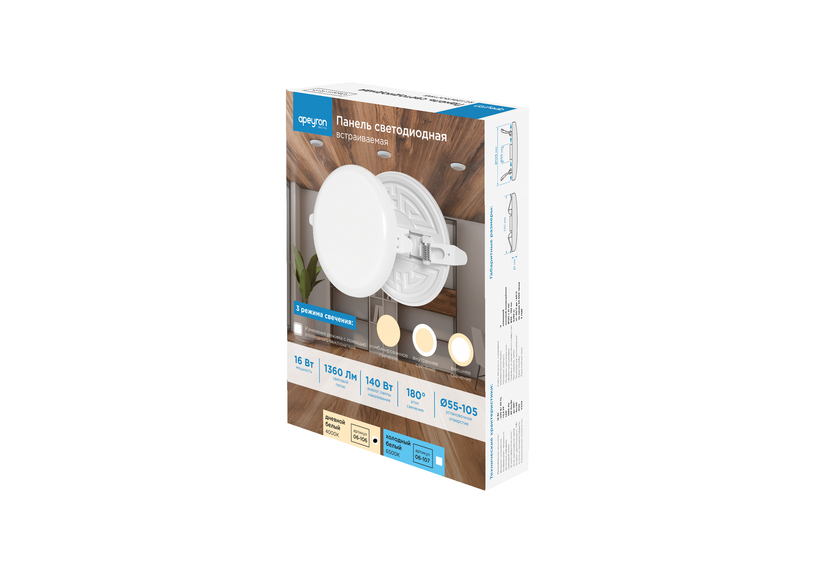 Встраиваемая светодиодная панель безрамочная Apeyron FLP 06-106