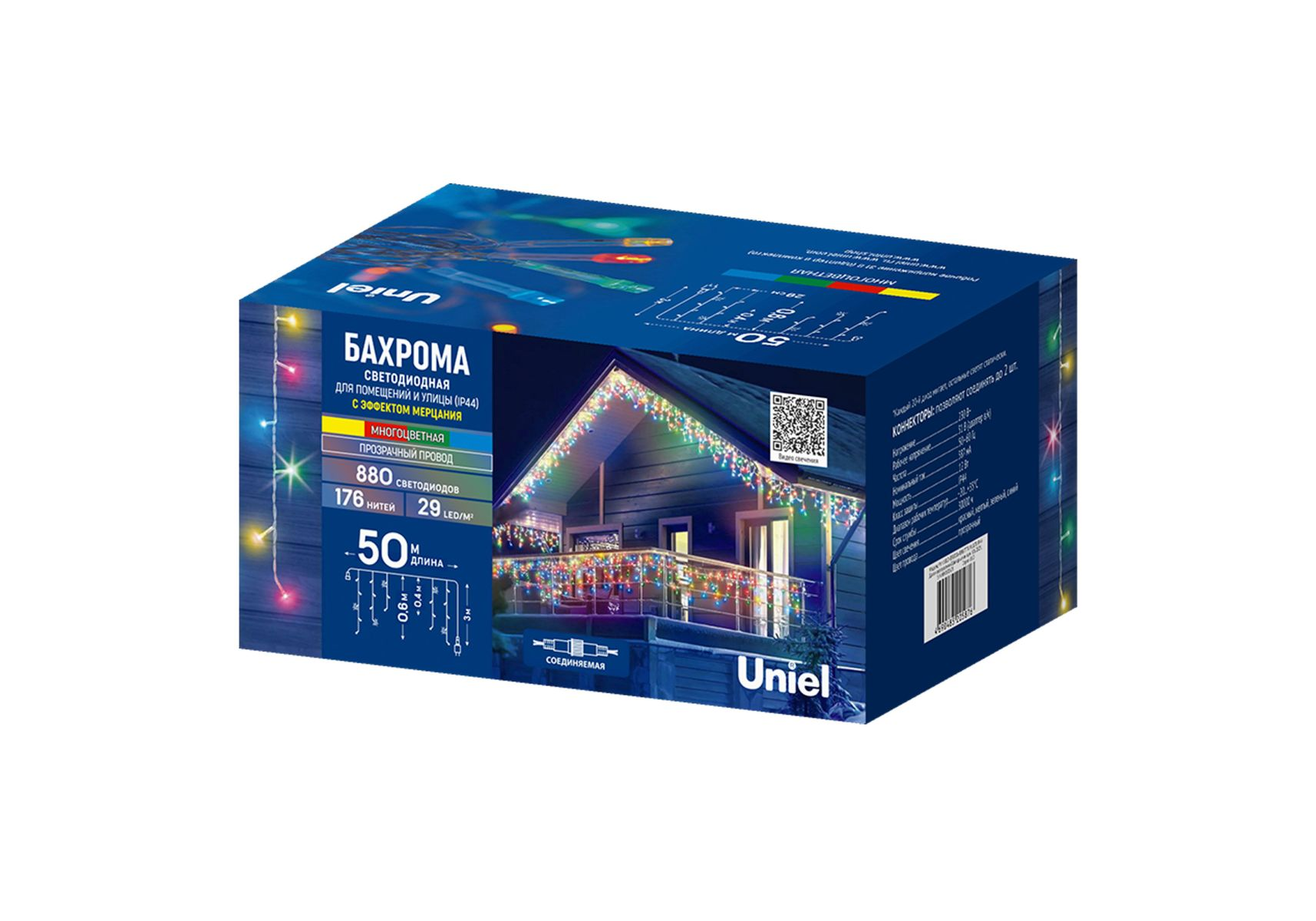 Гирлянда бахрома с эффектом мерцания Uniel ULD-B50006-880/TTK MULTI IP44 UL-00013125