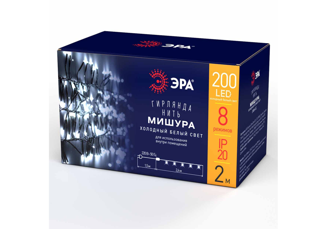 Гирлянда мишура 220V холодный белый ЭРА ENIN - GC Б0047969
