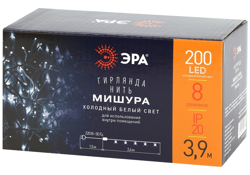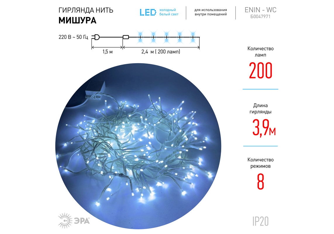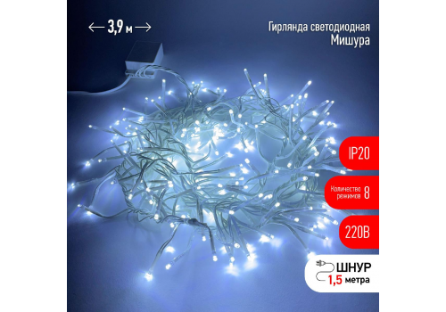 Гирлянда мишура 220V холодный белый ЭРА ENIN - WC Б0047971