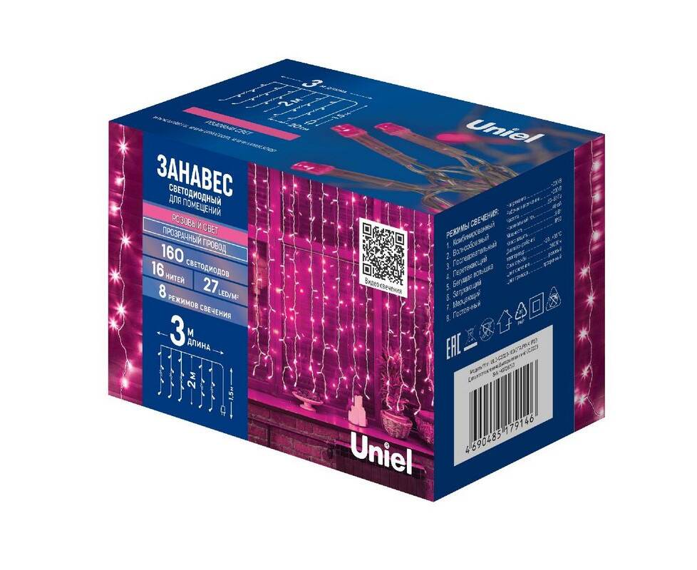 Гирлянда Uniel ULD-C3020-160/DTA PINK IP20 UL-00010916