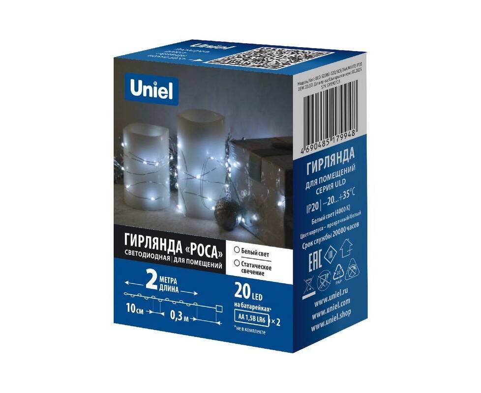 Гирлянда Uniel ULD-S0200-020/SСB/2AA WHITE IP20 DEW UL-00010896