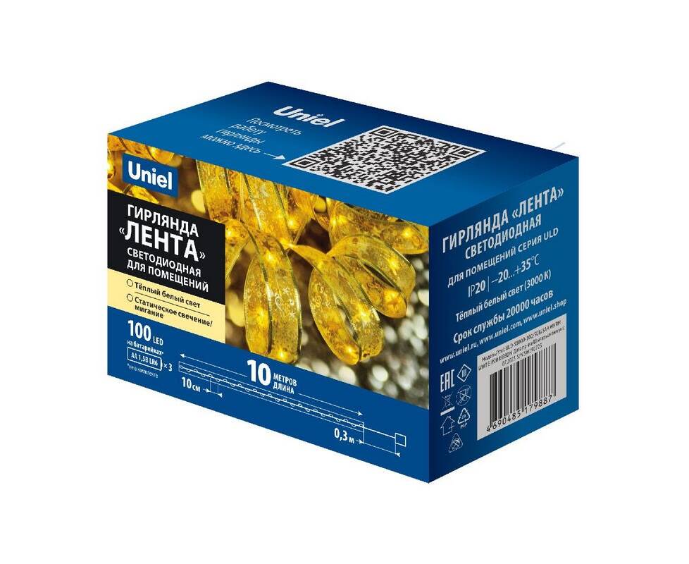 Гирлянда Uniel ULD-S1000-100/SCB/3AA WARM WHITE IP20 RIBBON UL-00010900