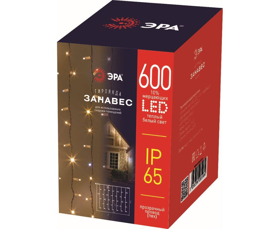 Гирлянда занавес Эра ERAPS-SP1 тёплый белый свет 600 LED