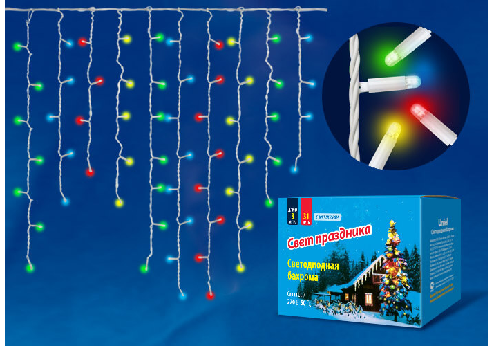 Светодиодная гирлянда Uniel бахрома 230V разноцветный ULD-B3010-200/TWK Multi IP67 UL-00002272