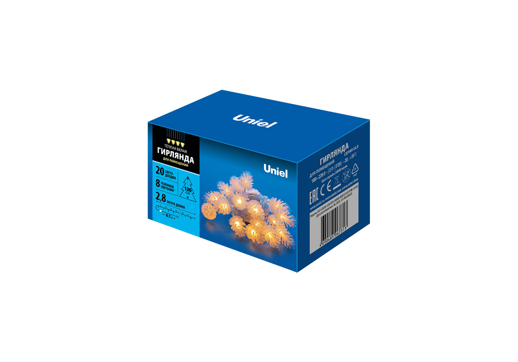 Светодиодная гирлянда Uniel шишки 220V белый ULD-S0280-020/DTA Warm White IP20 PINE CONES 09582