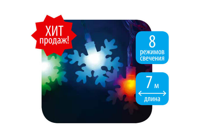 Светодиодная гирлянда Uniel Снежинки 220V разноцветный ULD-S0700-050/DTA MULTI IP20 SNOWFLAKES-3 07936