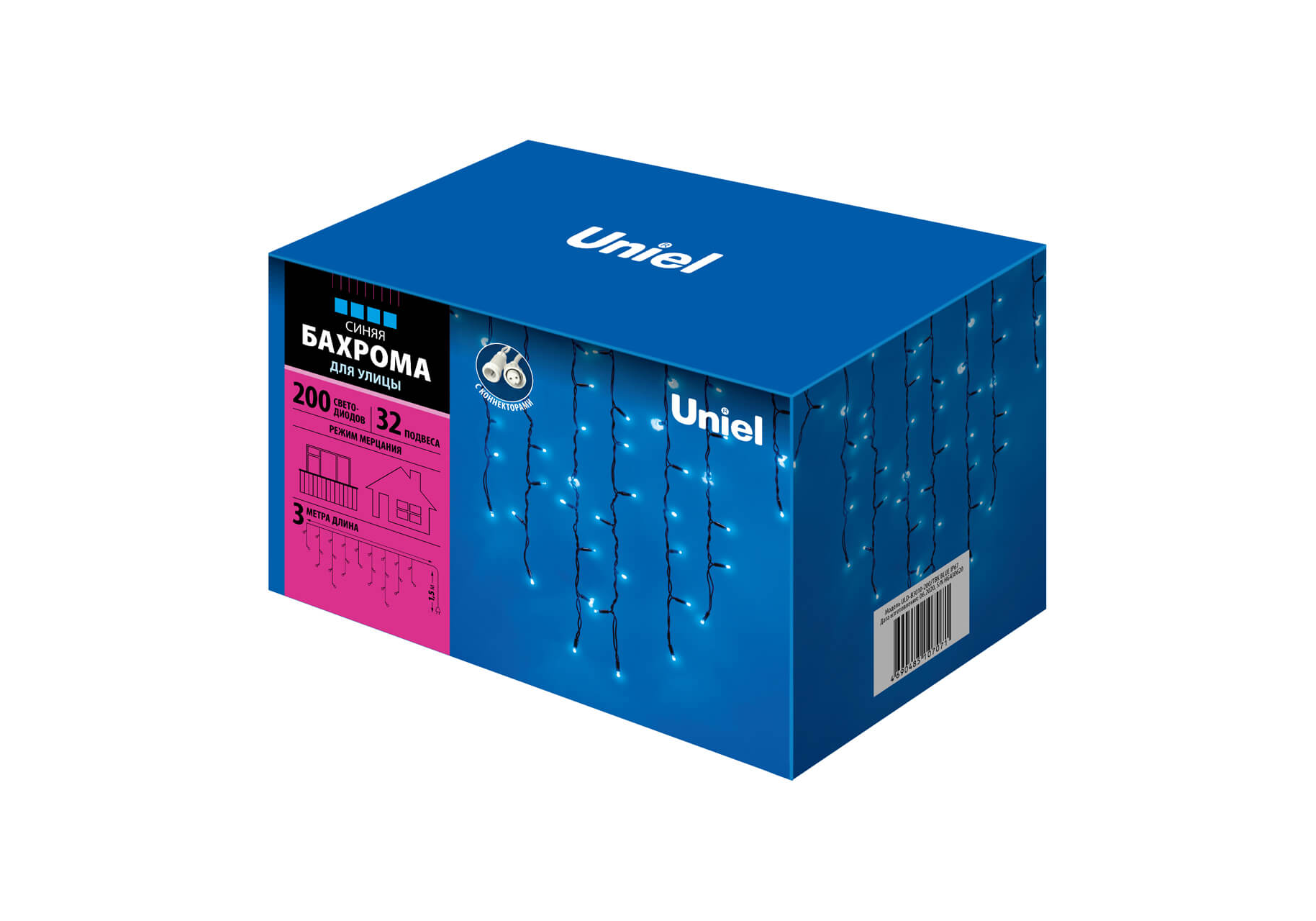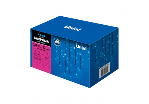 Уличная светодиодная гирлянда Uniel бахрома 220V синий ULD-B3010-200/TBK Blue IP67 UL-00003932