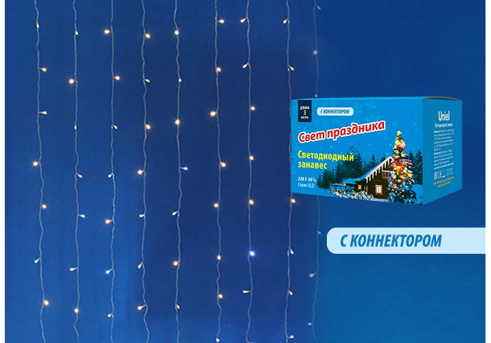 Уличная светодиодная гирлянда Uniel занавес 220V теплый белый- белый ULD-C2030-240/TTK WarmWhite-White IP44 UL-00003950