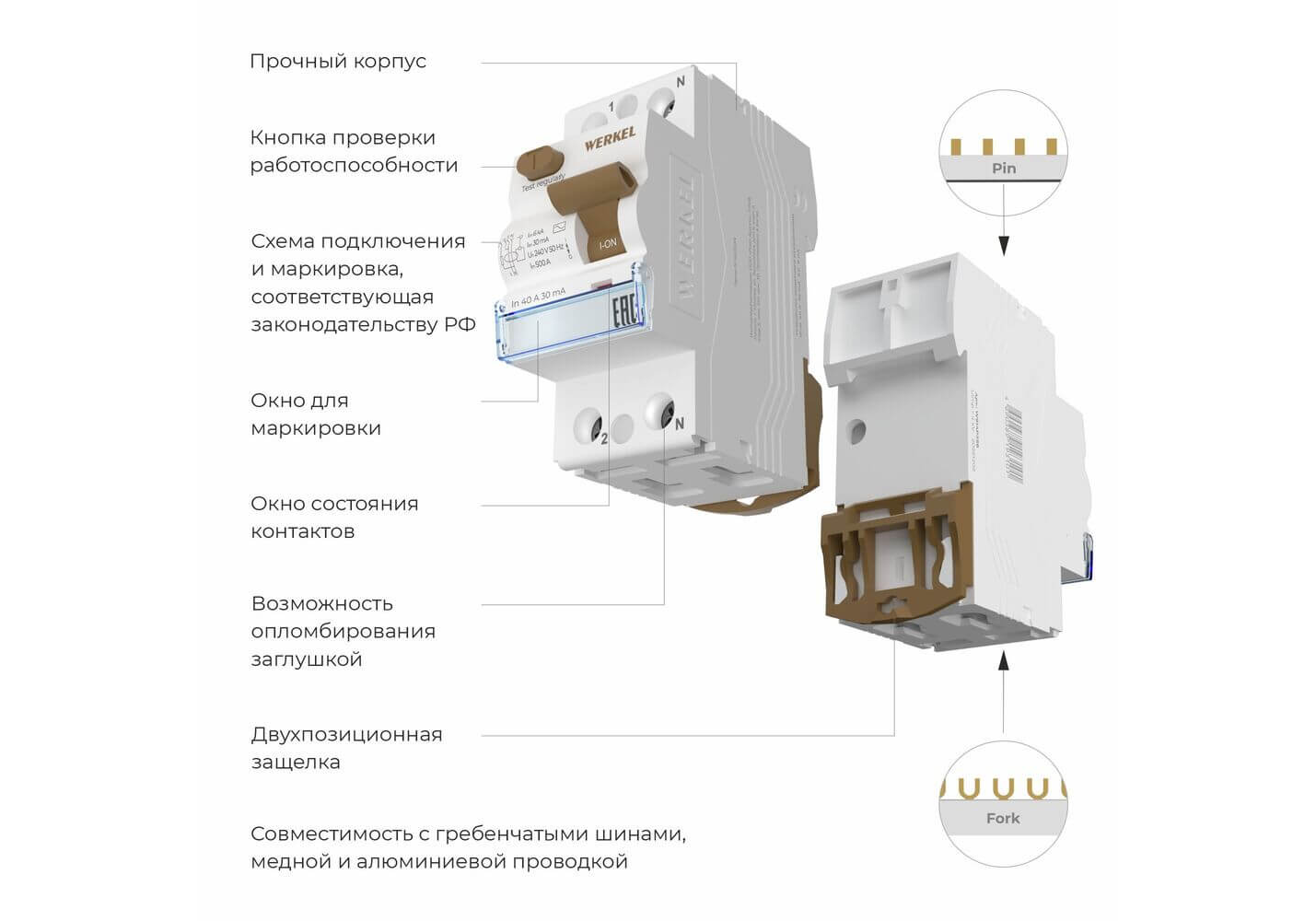 Автоматический выключатель Werkel 1P+N 40 A 30 mА АС 6 kА W912P406 4690389193101