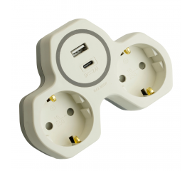 Разветвитель сетевой 2-местный с/з и USB+Type C Stekker ADP16-15-20 50071
