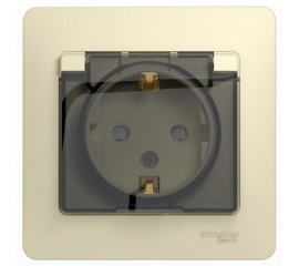 Розетка Systeme Electric GLOSSA, скрытый монтаж, с заземлением, с крышкой, со шторками, бежевый