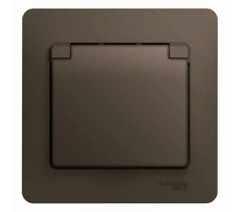 Розетка Systeme Electric GLOSSA, скрытый монтаж, с заземлением, с крышкой, со шторками, шоколад