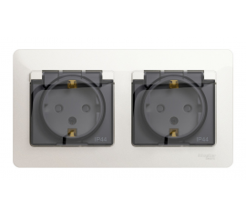 Розетка двухместная Systeme Electric GLOSSA, скрытый монтаж, с заземлением, с крышкой, со шторками, перламутр