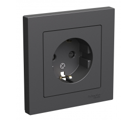 Розетка Systeme Electric ATLASDESIGN, скрытый монтаж, с заземлением, со шторками, базальт