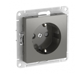Розетка Systeme Electric ATLAS DESIGN, скрытый монтаж, с заземлением, со шторками, быстрозажимные клеммы, сталь