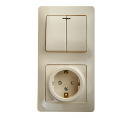 Блок: выключатель 2-клавишный и розетка Systeme Electric GLOSSA, скрытый монтаж, бежевый