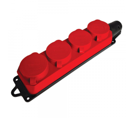 Розетка переносная 4-местная 2P+PE Stekker Одри с крышкой красный RST16-24-44-3 49400