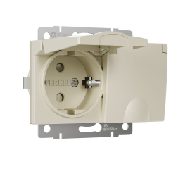 Розетка двойная влагозащищенная с заземлением с защитной крышкой и шторками Werkel слоновая кость W1172203 4690389178078
