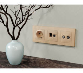 Лицевая панель Alfa (Шампань) для компьютерной/телефонной + TV розетки RJ-45/RJ-11 Quant Ambrella Vo