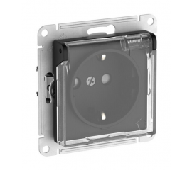 Розетка IP44 Systeme Electric ATLASDESIGN, скрытый монтаж, с заземлением, с прозрачной крышкой, со шторками, быстрозажимные клеммы, карбон