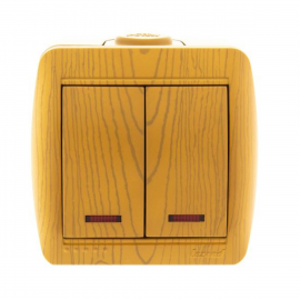Выключатель двухклавишный Systeme Electric Этюд 10A 250V с подсветкой сосна BA10-006D