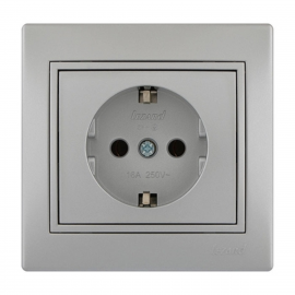 Розетка 2К+З Systeme Electric Этюд 16A 250V со шторками и крышкой серая PA16-044C
