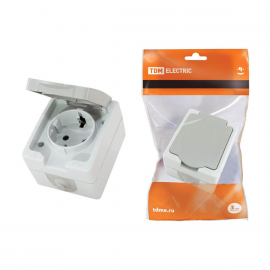 Розетка с зазем. с крышкой Lezard Mira белая с бел. вст. 701-0202-123