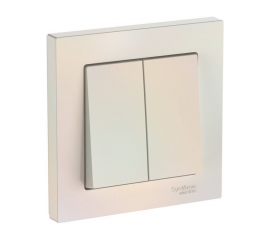 Выключатель 2-клавишный с рамкой Systeme Electric ATLAS DESIGN, скрытый монтаж, быстрозажимные клеммы, жемчуг
