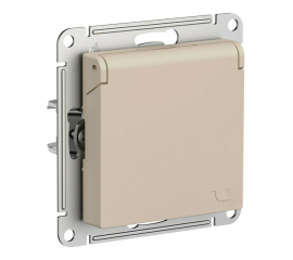 Розетка Systeme Electric ATLASDESIGN, скрытый монтаж, с заземлением, с крышкой, со шторками, песочный