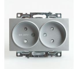 Розетка двойная 2P Stekker Катрин со шторками серебро GLS10-7113-03 39583