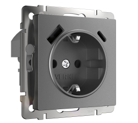 Розетка с заземлением, шторками и USBх2 Werkel графит W1171764 4690389194436