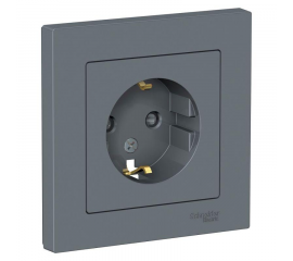 Розетка Systeme Electric ATLASDESIGN, скрытый монтаж, с заземлением, со шторками, грифель